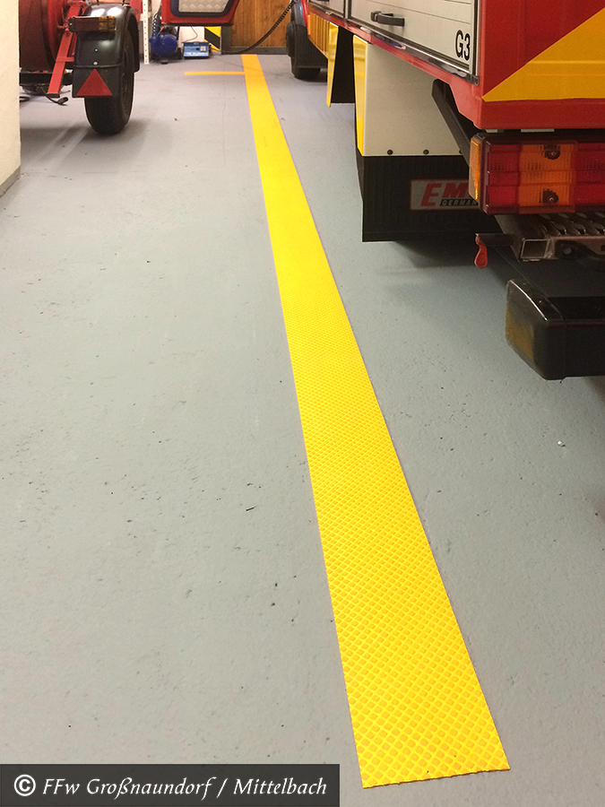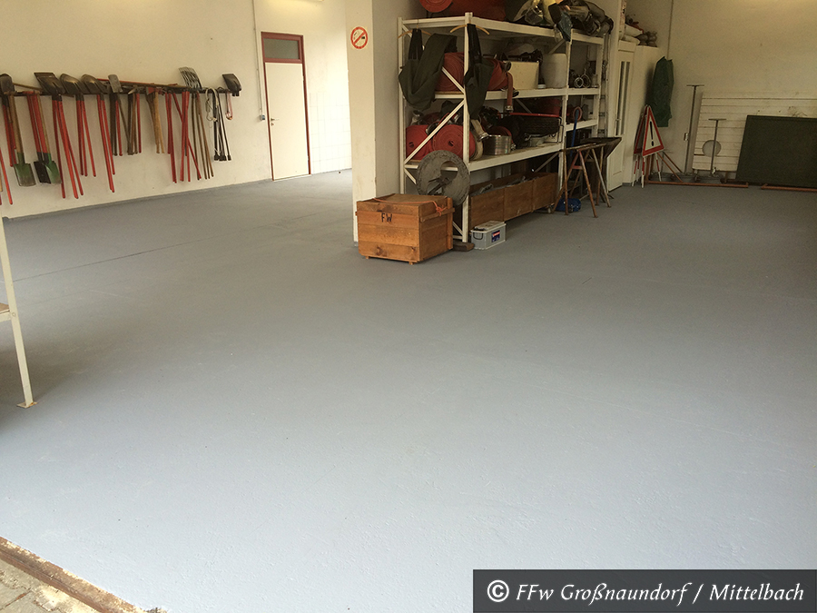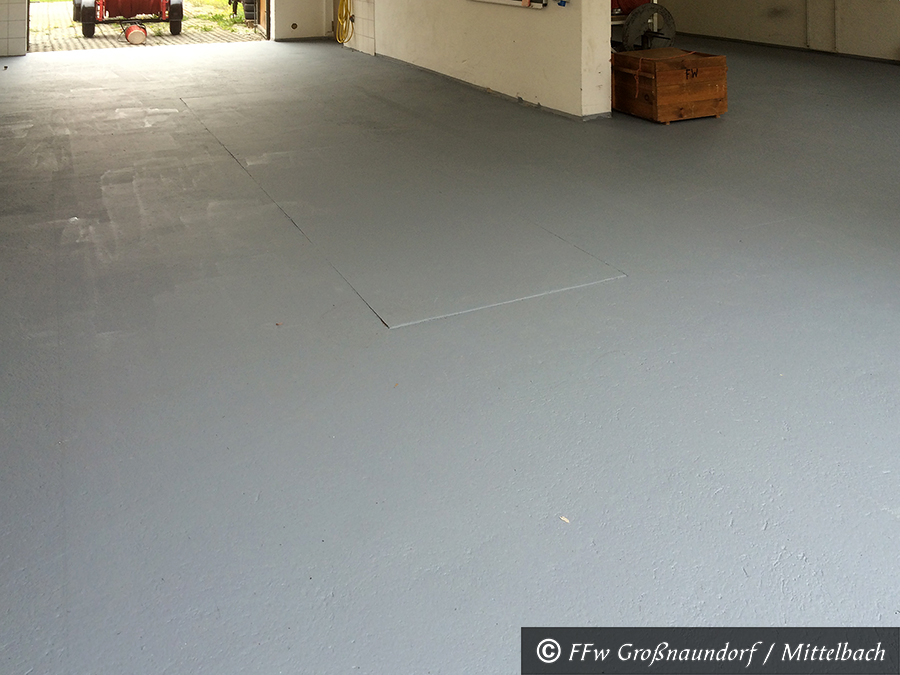 3. August 2015 - Dies ermöglichten uns ein paar Kameraden indem sie einen freien Samstagvormittag opferten und die Fahrzeughalle neu gestrichen haben. Und auch die Leitlinien für die Fahrzeuge wurden erneuert.