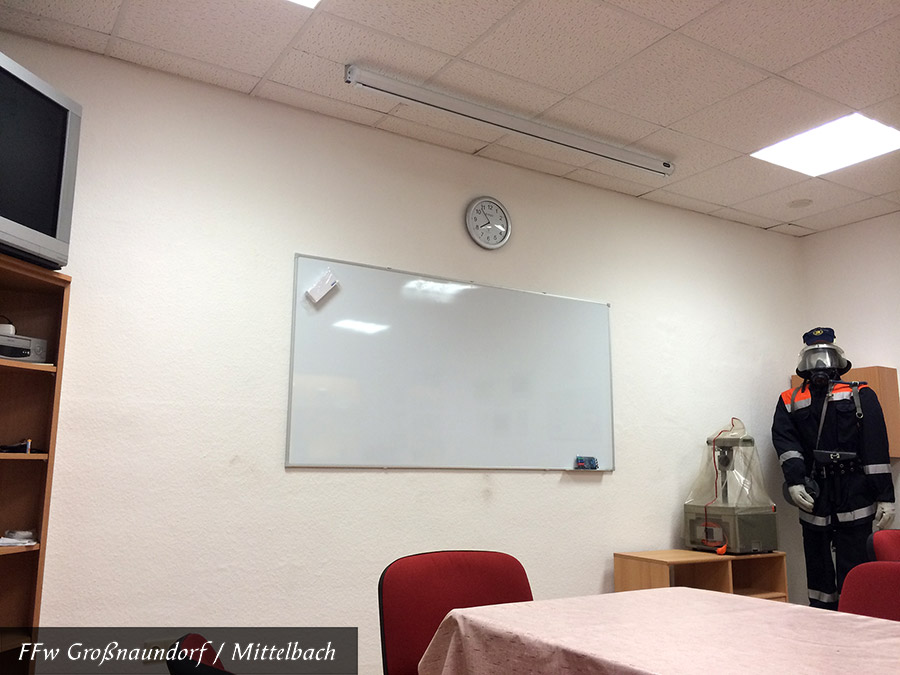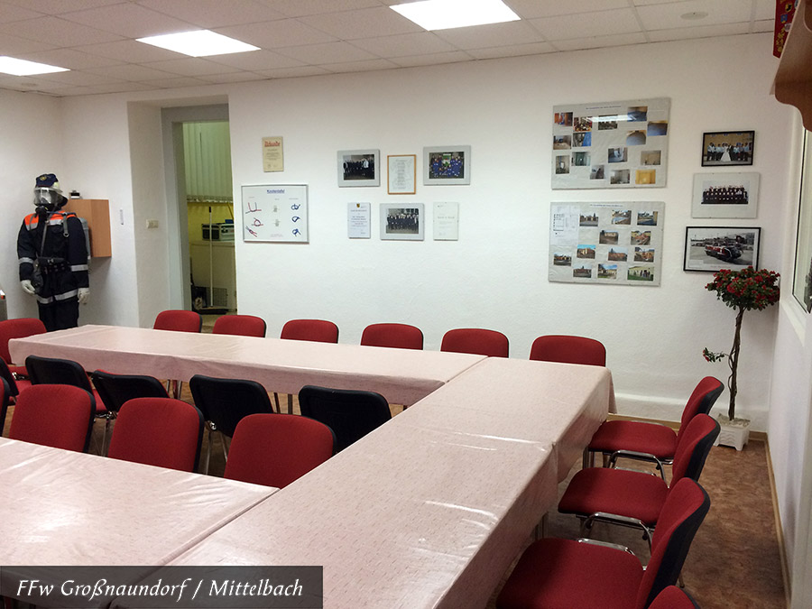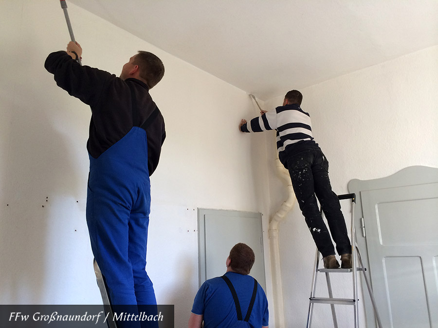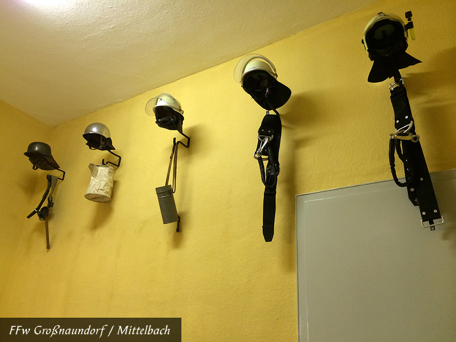 9. November 2013 - Zum Jahresende galt es unseren Schulungsraum noch etwas auf Vordermann zu bringen. Die Küche erhielt einen neuen Anstrich und an der Wand wurden Helme, die im Laufe der Jahre in der FFw Großnaundorf/ Mittelbach Dienst taten, montiert. Im Schulungsraum selber wurden Schandflecken ausgebessert, ein Whiteboard und eine Leinwand montiert und die Wände wurden mit Bildern verschönert.