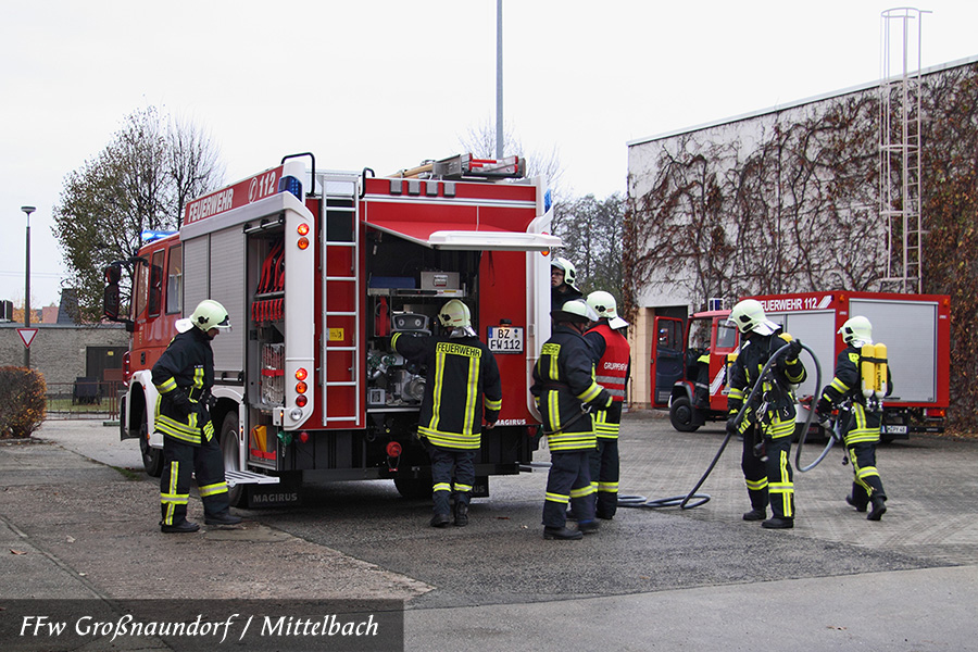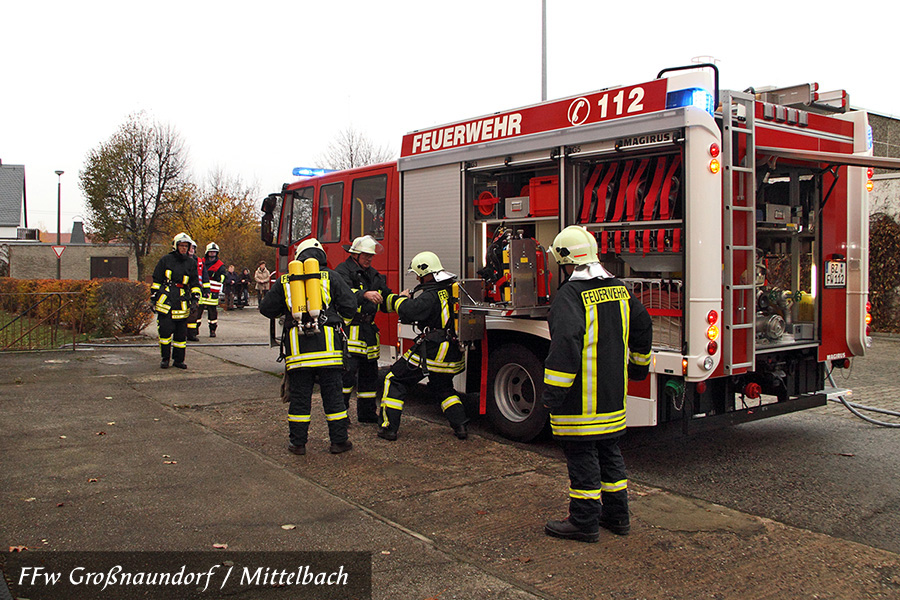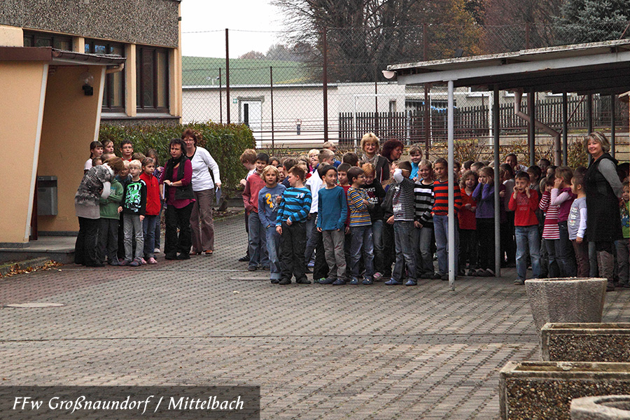 Am 09.11.12 wurden wir und die FFw Lomnitz am frühen Morgen mit dem Einsatzstichwort „Rauchentwicklung Grundschule Pulsnitzer Straße 1“ alarmiert. Am Einsatzort angekommen waren bereits alle Personen aus dem gesamten Gebäude evakuiert und keiner mehr in Gefahr. Spätestens zu diesem Zeitpunkt wusste jeder dass es sich um eine Einsatzübung der FFw Großnaundorf und um eine Evakuierungsübung der Grundschule Leppersdorf handelt. Die Grundschule Leppersdorf gastiert 1 Jahr lang in Großnaundorf. Um 08.40 Uhr wurde die Übung beendet und im Schulungsraum der FFw Großnaundorf bei einem Kaffee und etwas zu Essen ausgewertet.