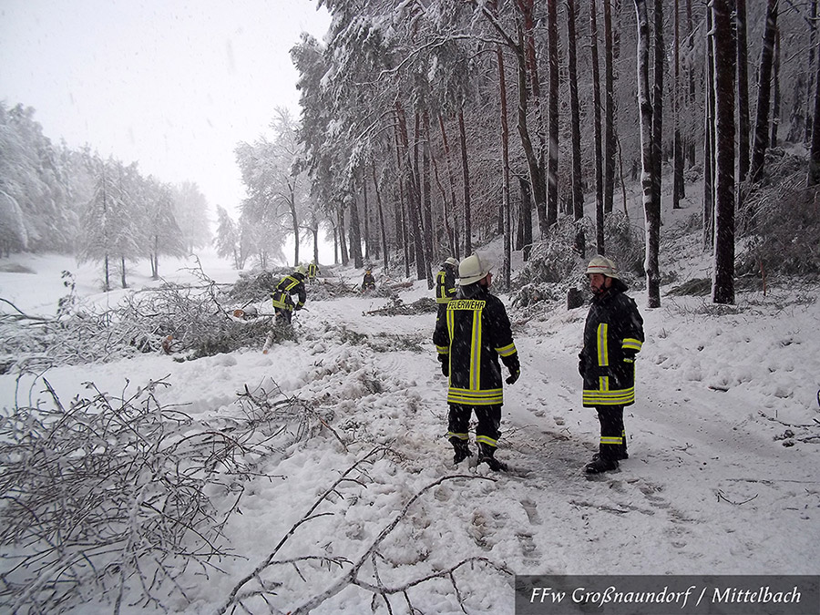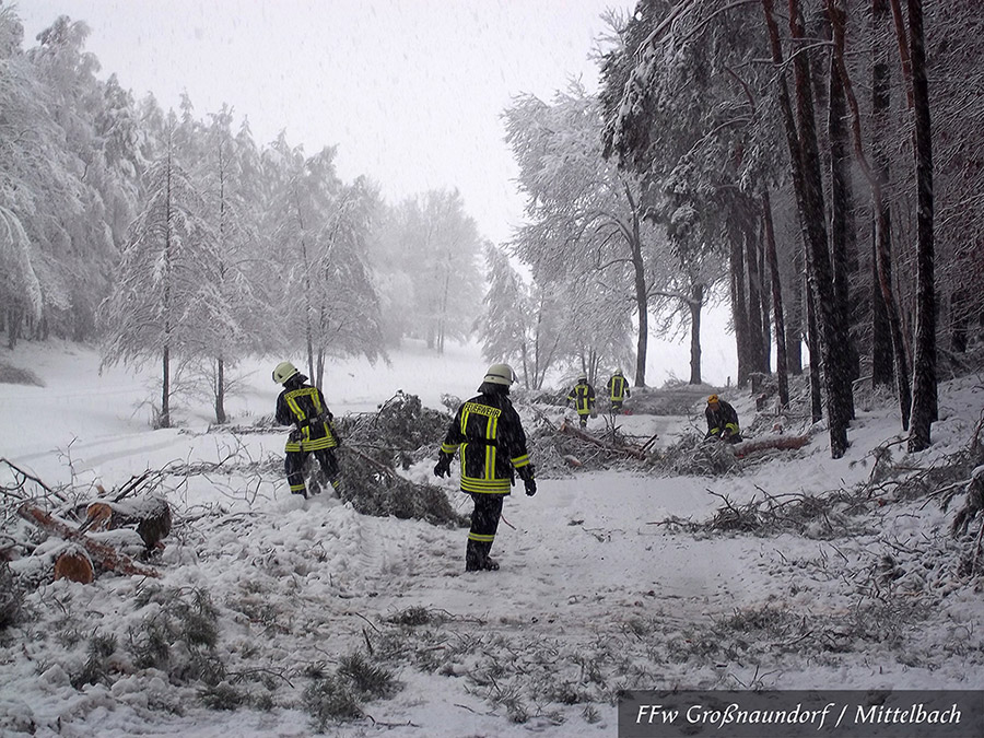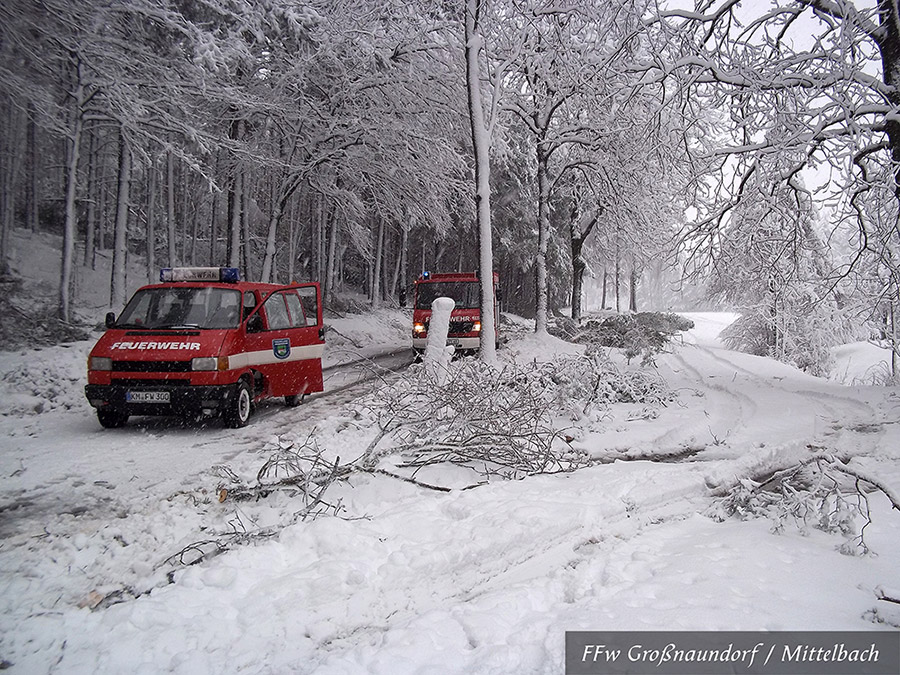 Auf dem Rückweg von Oberlichtenau fuhren wir direkt in den nächsten Einsatz hinein. Erneut sind Bäume auf der OVS Großnaundorf - Oberlichtenau umgestürzt und versperrten den Weg. Auch diese Bäume wurden beseitigt das die Straße wieder frei war. Nach Rücksprache mit der Leitstelle und der Straßenmeisterei bleibt die Straße bis auf weiteres voll gesperrt. Die Gefahr von weiterem Schneebruch ist viel zu groß. Nach über 5 Stunden konnte auch dieser Einsatz beendet werden und der wohlverdiente Weg nach Hause angetreten werden.