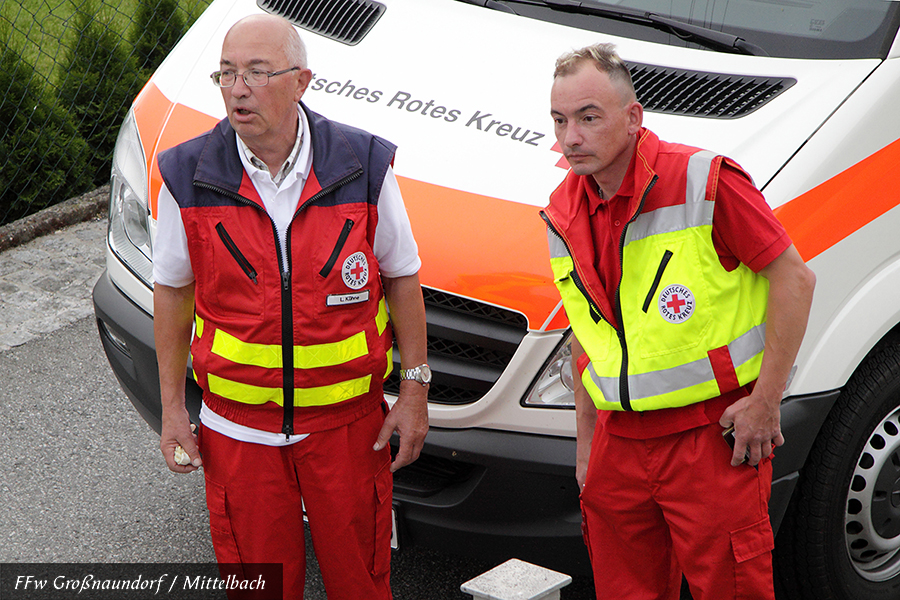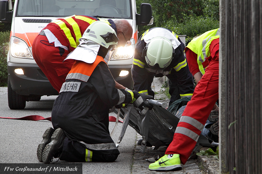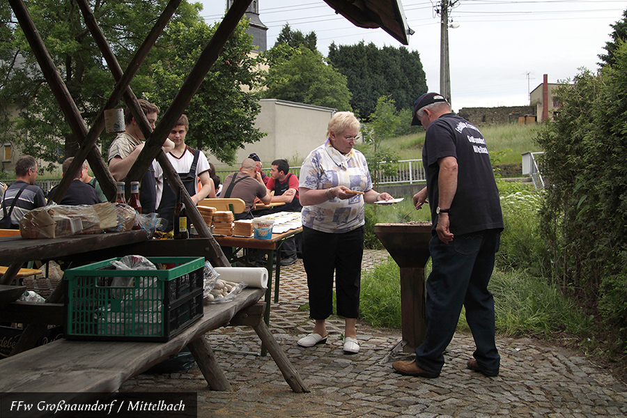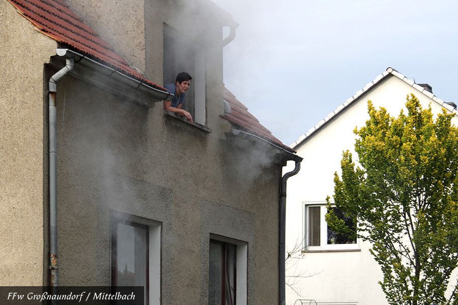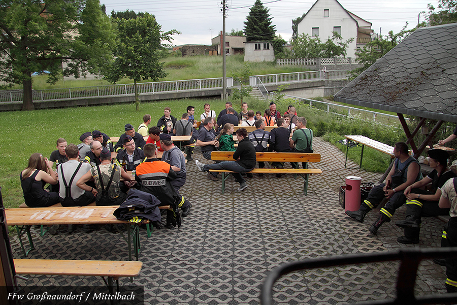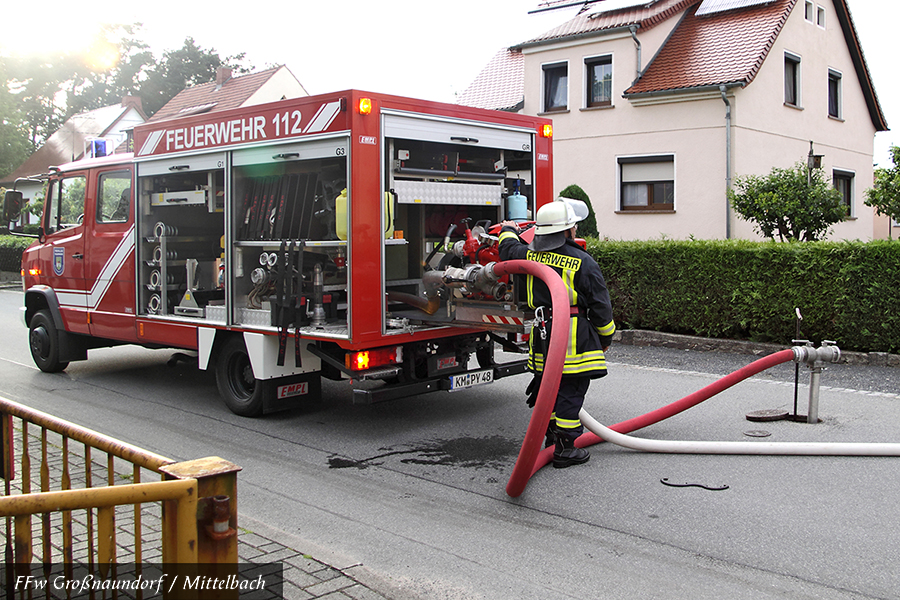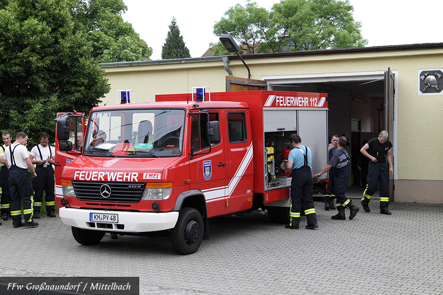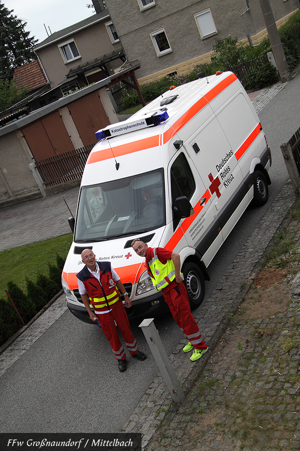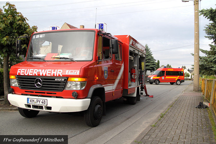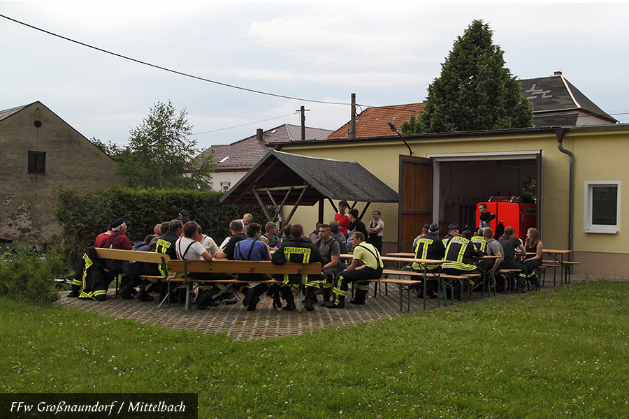 Alarm am 14.06.2013 um 19:23 Uhr für die Feuerwehr Großnaundorf. Die Meldung „Kellerbrand EFH Nordstraße 2“ ließ nichts Gutes erahnen. Nach 7 Minuten war die FFw Großnaundorf mit beiden Fahrzeugen und 9 Kameraden vor Ort. Nach kurzer Lageerkundung beim Hauseigentümer, der sagte das noch 2 Personen im Gebäude sind, ließ der Gruppenführer noch die FFw Lomnitz und die FFw Oberlichtenau nachalarmieren. Sofort wurde eine Wasserversorgung aufgebaut und ein Trupp machte sich zur Menschenrettung auf in den Keller des Gebäudes. Als der Trupp die Verletzte Person erreichte ereilte dem Einsatzleiter der Funkspruch „MAYDAY MAYDAY MAYDAY“. Das heißt der Trupp im Gebäude hat ein Problem und brauch dringend Hilfe. Sofort machte sich der Sicherheitstrupp auf ins Gebäude und rettete die Verletzte Person und den in Not geratenen Angriffstrupp. Die 2. Person im Gebäude machte sich im Dachgeschoss an einem Fenster bemerkbar. Diese wurde über die Steckleiter in Sicherheit gebracht. Die SEG Oberlichtenau kümmerte sich um alle 3 Verletzten Personen, darunter auch ein Feuerwehrkamerad. Das Feuer wurde gelöscht und somit konnte die Übung abgeschlossen werden.