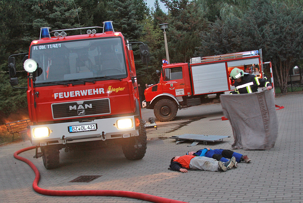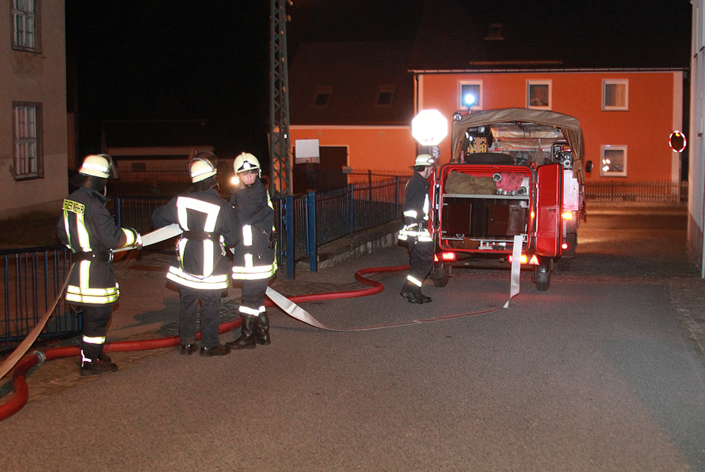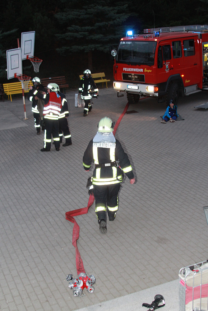 Alarm um 18.23Uhr für alle 3 Ortswehren von Pulsnitz! Gemeldet wurde ein Entstehungsbrand in den Ausbildungsräumen des SZO auf der Keulenbergstraße in Oberlichtenau, das Prekäre an der Situation war aber dass sich noch etwa 50 Kinder vor Ort befanden. Schnell erkennt der Einsatzleiter dass Kräfte und Mittel nicht ausreichen und lässt laut AAO Brand 3 um 18.41Uhr die FFw Steina, FFw Reichenbach und die FFw Großnaundorf/Mittelbach nachalarmieren. Am Einsatzort angekommen wurde uns der Einsatzabschnitt 3 Wasserversorgung zugeteilt. Unsere Wehr stellte auch den Abschnittsleiter dazu. Zusammen mit der FFw Reichenbach bauten wir eine Wasserentnahmestelle und eine doppelte ca. 300m lange B-Schlauchleitung auf. Die Pulsnitztalstraße in Oberlichtenau wurde dazu von uns komplett gesperrt. Nach ca. 1h kam die Meldung „Wasser halt“ und die Übung wurde beendet. Nach einer Auswertung und einer kleinen Stärkung ging es dann wieder zurück zum Ausgangspunkt!