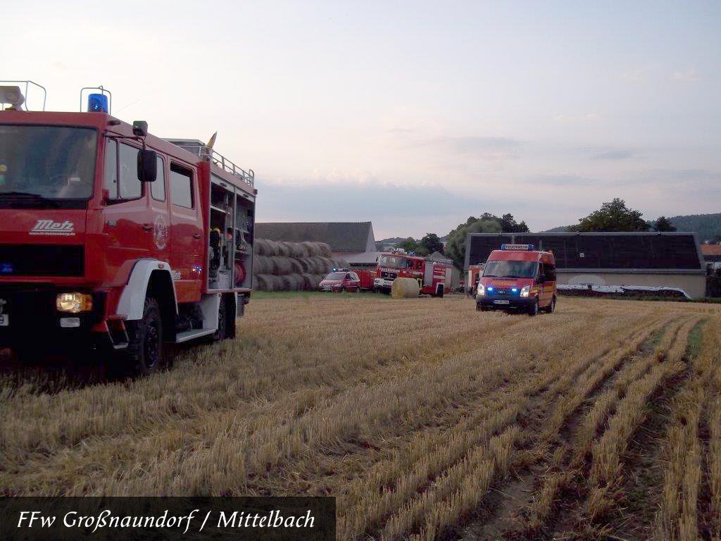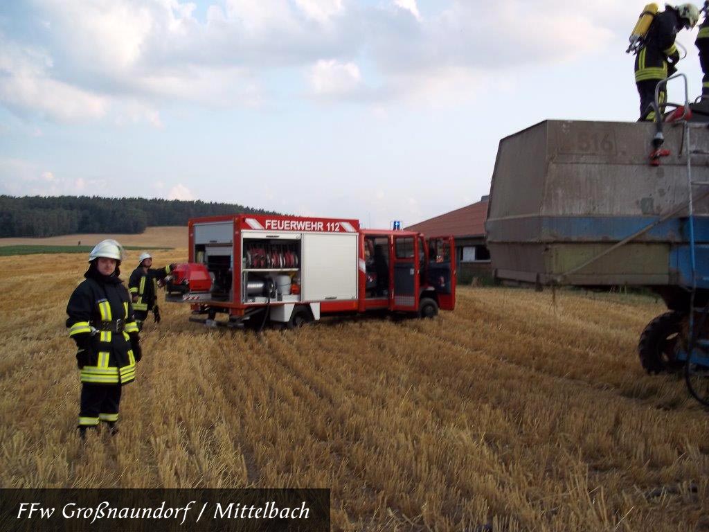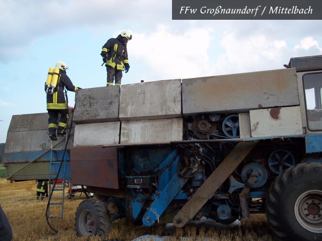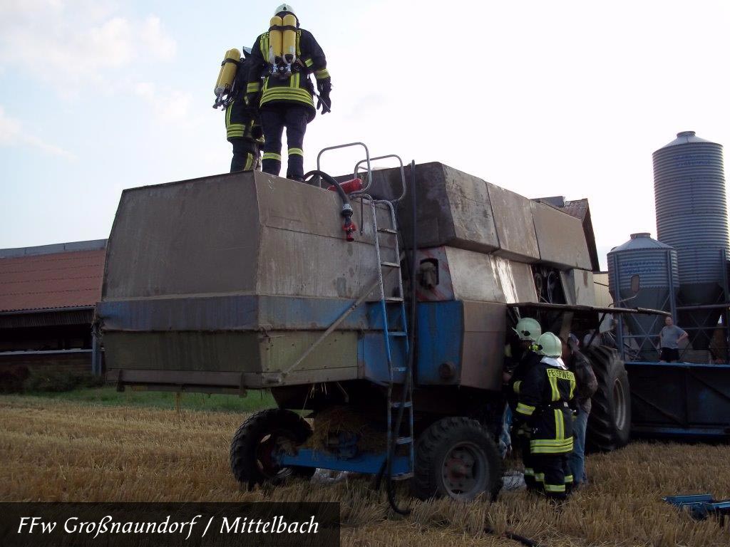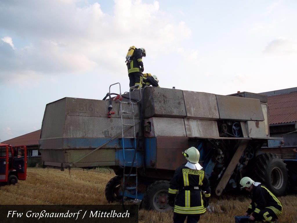 Wir wurden zu einem in Vollbrand stehenden Mähdrescher auf einem Feld in Großnaundorf alarmiert. An der Einsatzstelle bestätigte sich die Meldung allerdings nicht. Lediglich im Motorraum brannte es. Zusammen mit der FFw Lichtenberg stellten wir einen Angriffstrupp der das Feuer mit Wasser und Schaum löschte.