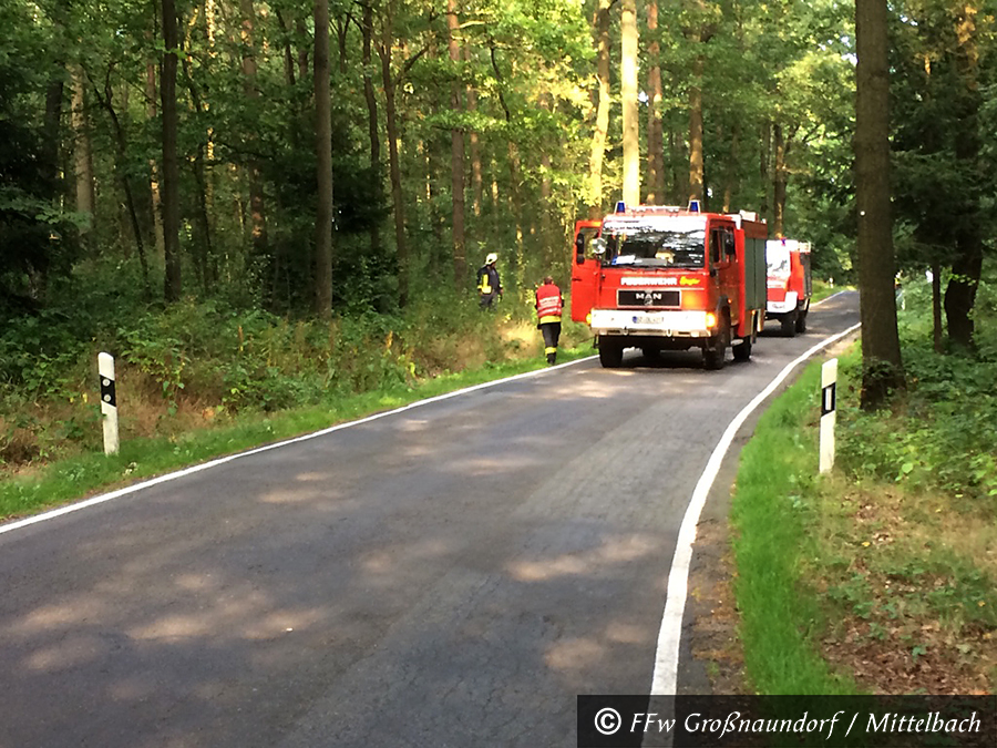 Wir wurden auf die Ortsverbindungsstraße Großnaundorf – Oberlichtenau zu einem Waldbrand gerufen. Am Einsatzort angekommen hatte die Polizei bereits die Flammen auf 1qm gelöscht. Die FFw Oberlichtenau übernahm die Restablöschung. Hätte eine zufällig vorbeifahrende Autofahrerin den Brand nicht bemerkt, wäre es nicht so glimpflich ausgegangen.