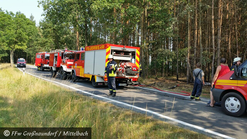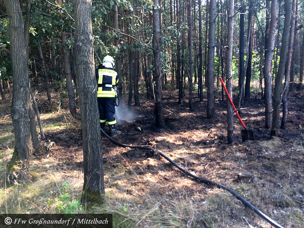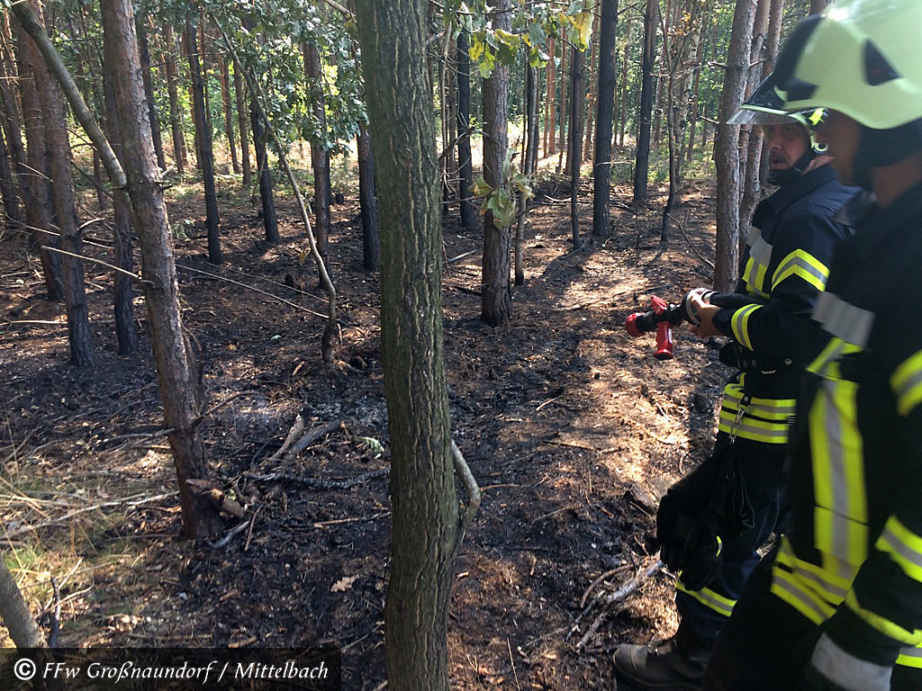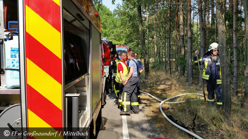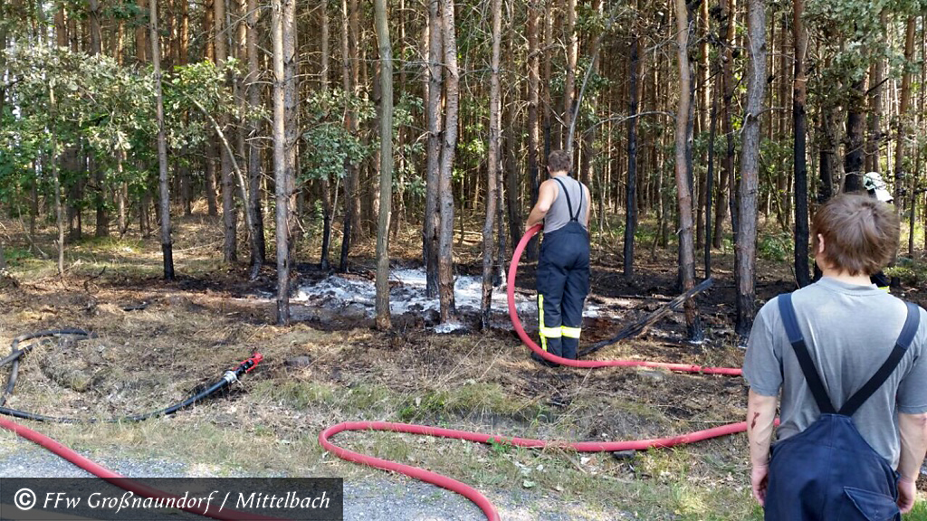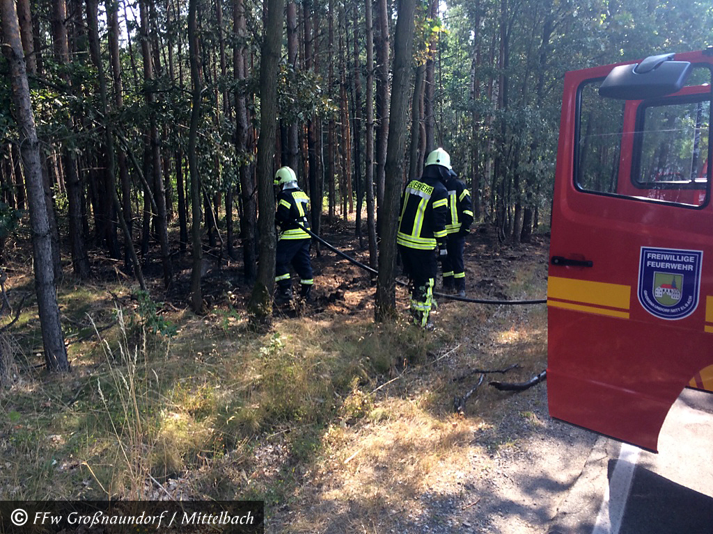 Erneut wurden wir zu einem Waldbrand auf die OVS Großnaundorf – Oberlichtenau gerufen. An der Einsatzstelle vom 07.08.2015 qualmte es aus dem Waldboden. Eine aufmerksame Passantin sah dies und alarmierte die Feuerwehr. Wir löschten gemeinsam mit den Kameraden aus Oberlichtenau die Brandstelle mit Netzmittel ab und bewässerten die Umgebung großflächig. Im Anschluss wurde die Brandfläche mit der Wärmebildkamera abgesucht. Für die Kameraden aus Lichtenberg und Lomnitz gab es nichts zu tun.