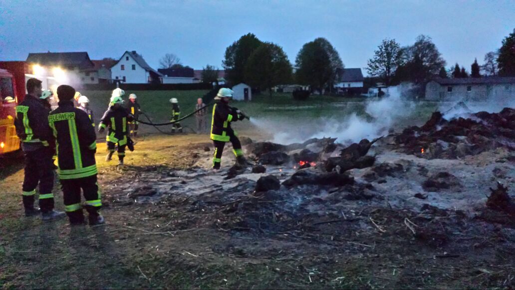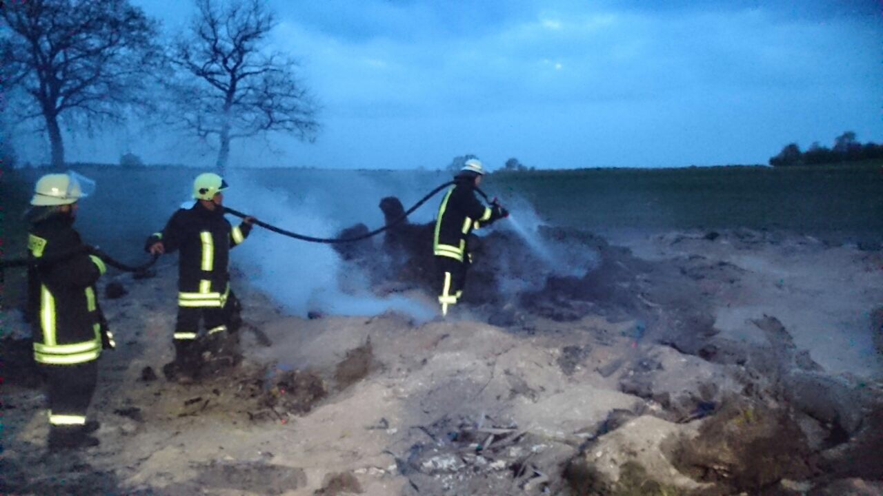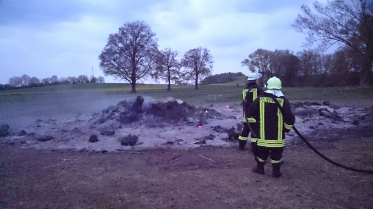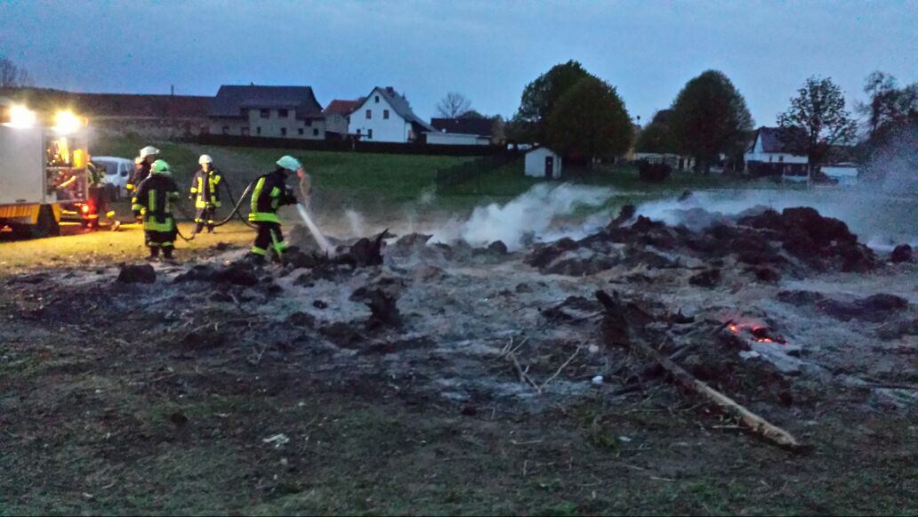 Über die Leitstelle der Polizei kam erhielten wir die Meldung, dass der Hexenfeuerhaufen erneut aufflammt. Wir fuhren zur Einsatzstelle und löschten die Flammen ab. Nach einer Stunde stellten wir die Einsatzbereitschaft am Standort wieder her.