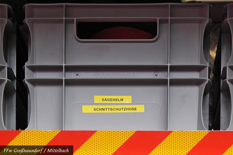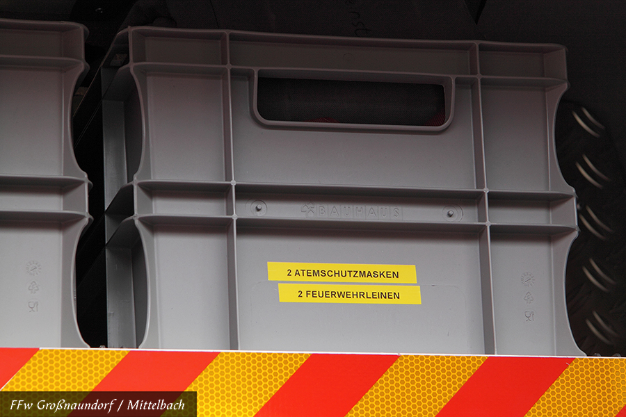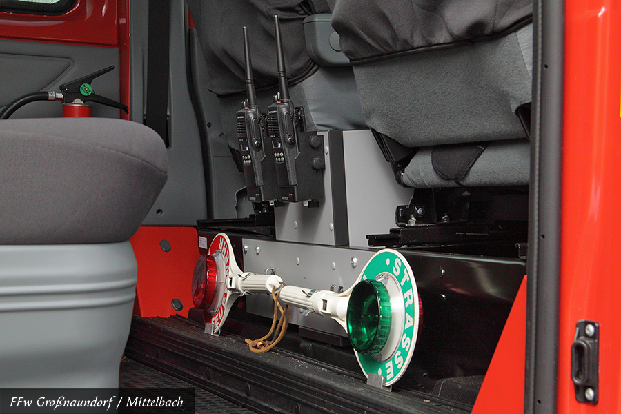 Einsatzstellenschutz: | 5x Verkehrsleitkegel 2x Kellen „Halt Feuerwehr“ |
