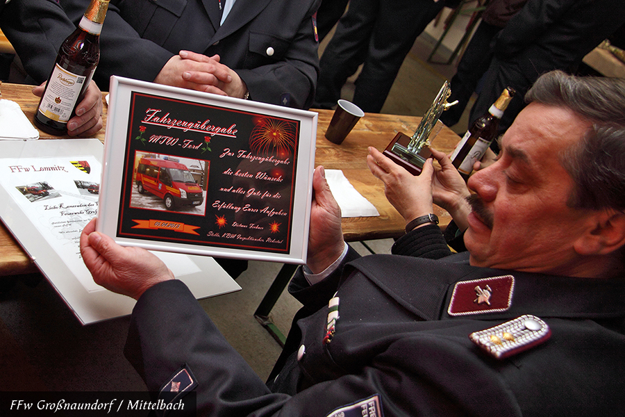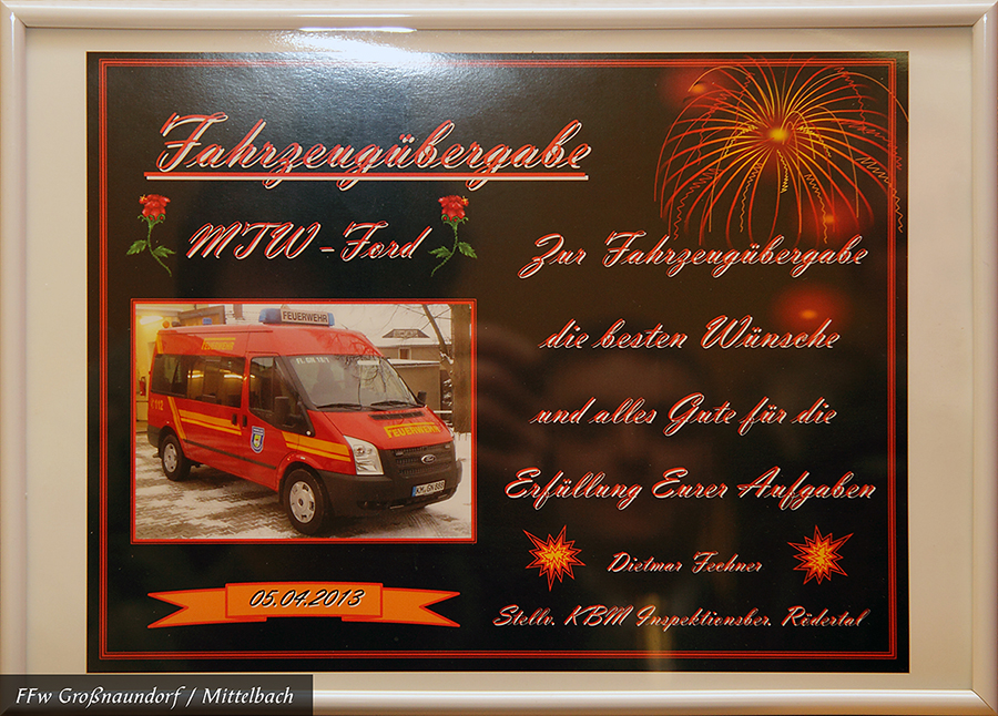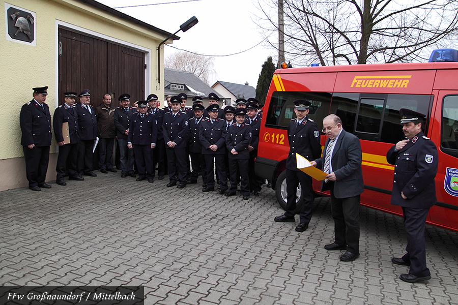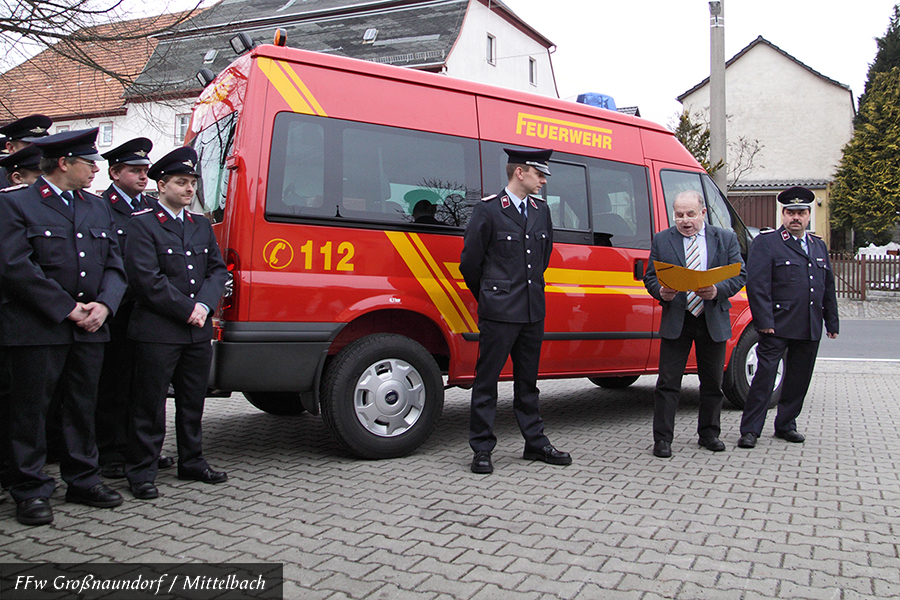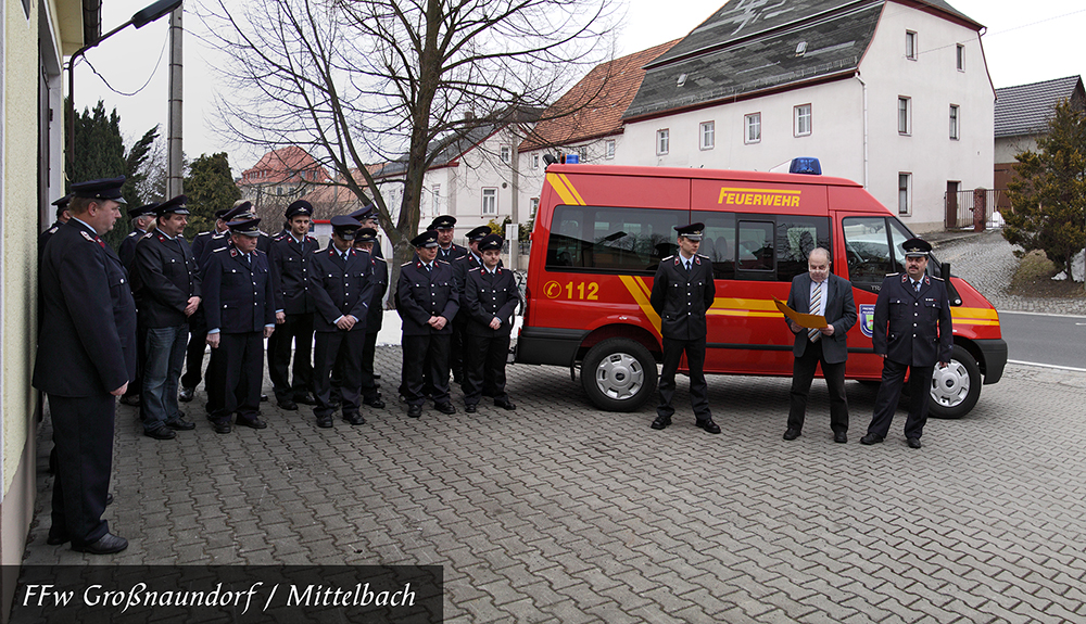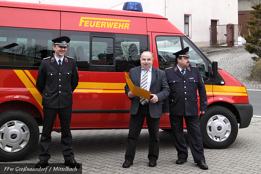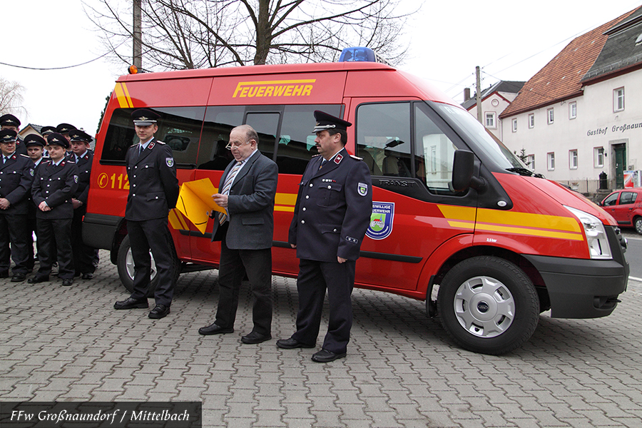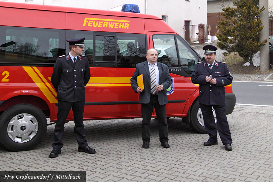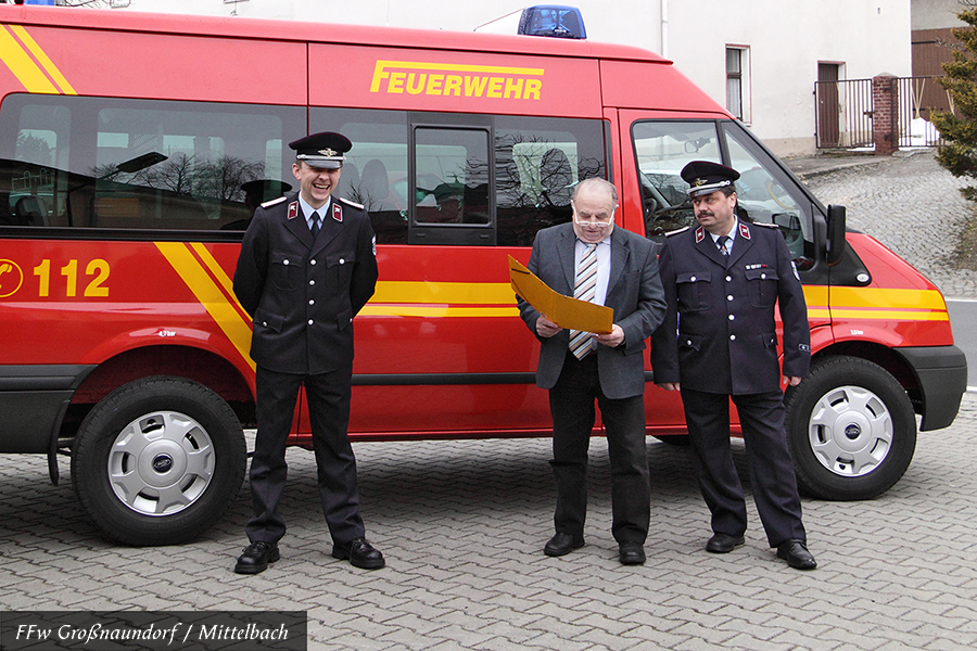 übergab unser Bürgermeister Jürgen Kästner den neuen Mannschafts-transportwagen (MTW) unserer Freiwilligen Feuerwehr von Großnaundorf / Mittelbach.
