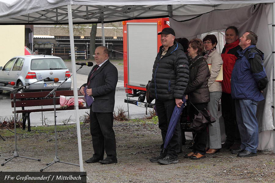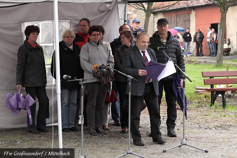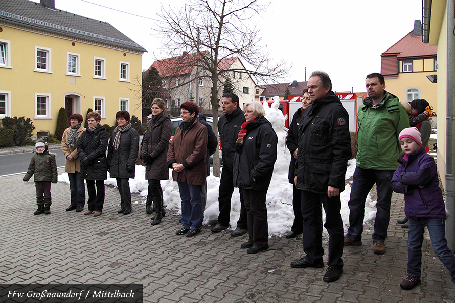 Außer Großnaundorfer Bürger und deren Gemeinderat begrüßten wir auch den stellvertr. Kreisbrandmeister des Inspektionsbereiches Rödertal Dietmar Fechner, Kameraden der FFw Lomnitz, den Leiter der Werkfeuerwehr des Flughafens Dresden Steffen Hempel sowie Bärbel Hilbert und Steffen Kirst von der Zentralen Verwaltung in Pulsnitz.