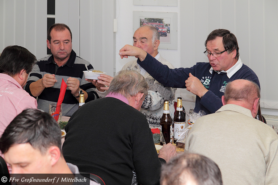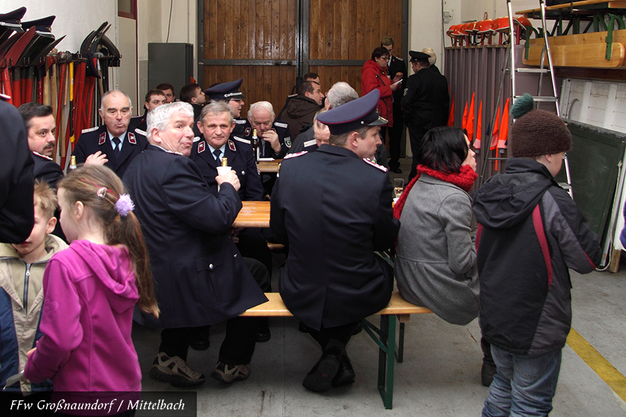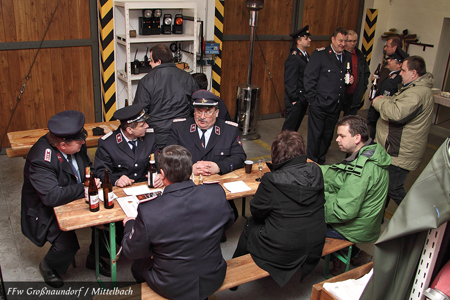 Am Mittwoch, dem 14 März 2001 lud die Freiwillige Feuerwehr Großnaundorf/Mittelbach das erste Mal zum gemeinsamen Beisammensein der Alters- und Ehrenabteilung ein. Nach der Schließung der Außenstelle Mittelbach Ende letzten Jahres kam Unruhe in den Reihen der Kameraden auf. Die Aktiven unterstützten tatkräftig Großnaundorf. Aber was wird aus unserer älteren Generation, Kameraden die 40 Jahre, einige sogar 50 Jahre der Feuerwehr die Treue hielten uns noch heute halten?
