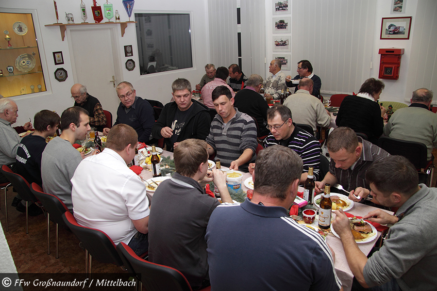Zum Jahresabschluß am Freitag den 28. November 2014 waren wieder alle Kameraden der FFw Großnaundorf/Mittelbach und einige Gäste zu einer Weihnachtsfeier eingeladen. Außer die Kameraden der Aktiven und der Ehrenabteilung empfing unser Wehrleiter, Dieter Grabke, auch den Leiter der Werkfeuerwehr des Flughafens Dresden Steffen Hempel sowie Monika Berndt von der Zentralen Verwaltung in Pulsnitz, unseren Bürgermeister Jürgen Kästner und unseren Internet-FotoGrafiker Gunter Schirrmeister, aufs Herzlichste. Bei diesem Wiedersehen entwickelten sich überall interessante und herzliche Gespräche. Für das leibliche Wohl war wieder hervorragend gesorgt.
