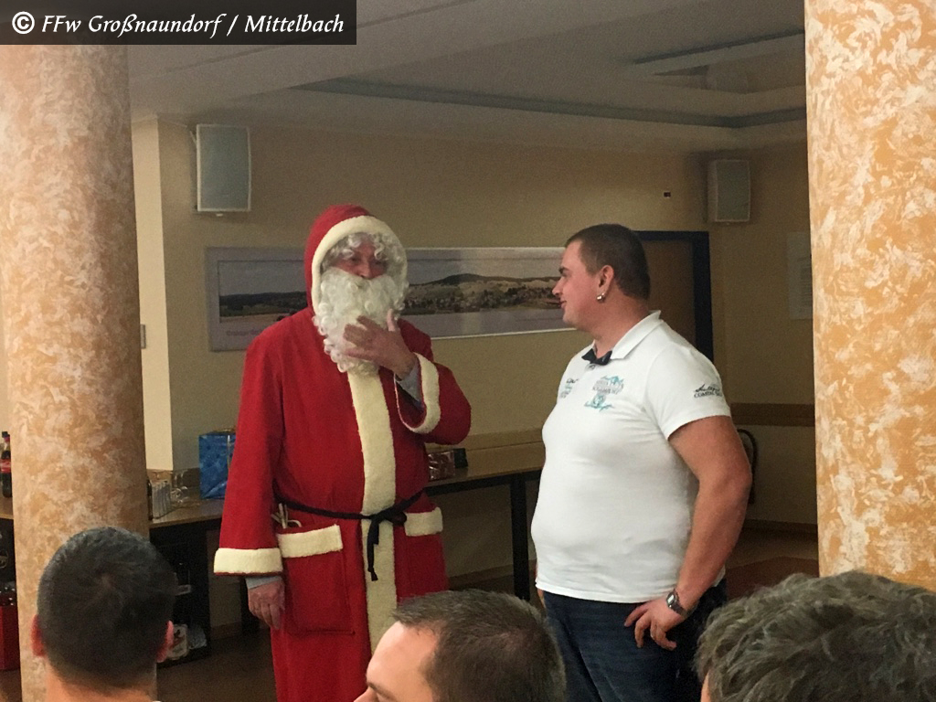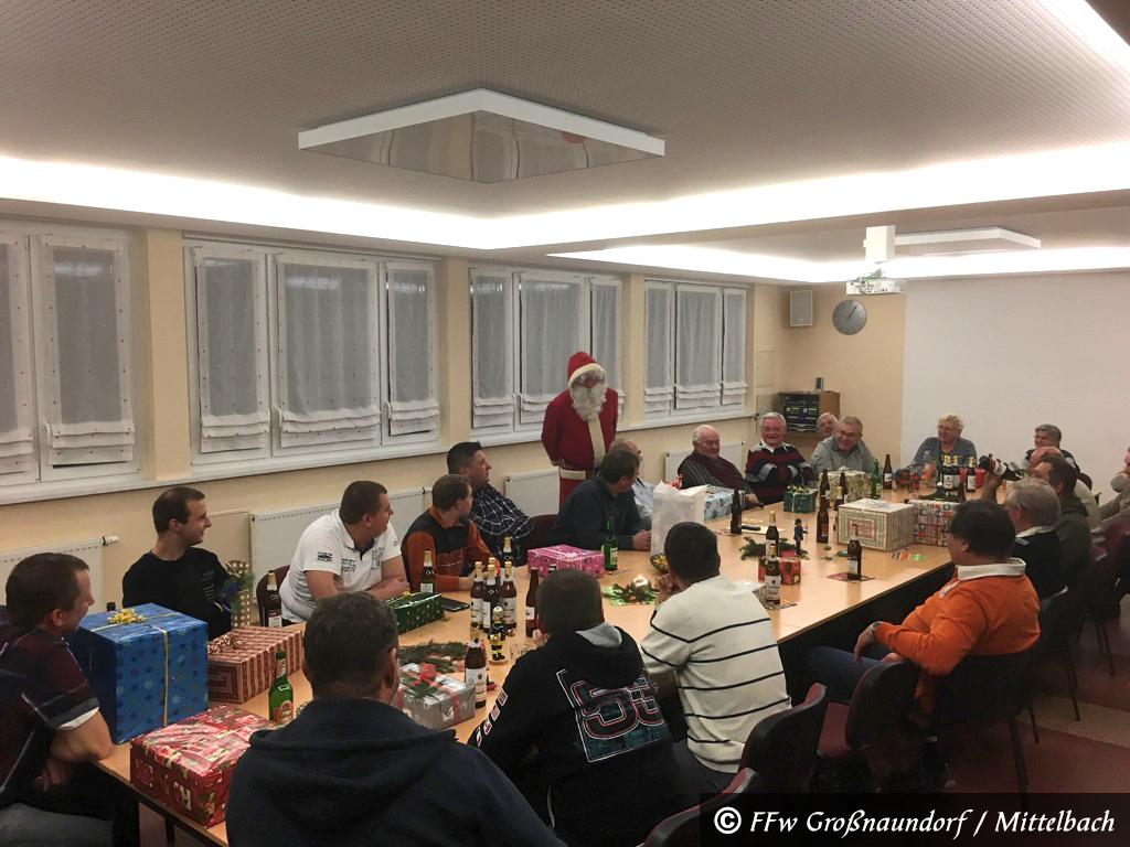 Am Freitag 02.12.2016 trafen sich die Alters- und Ehrenabteilung und die Aktive Abteilung unserer Feuerwehr zu der diesjährigen Weihnachtsfeier im Dorfgemeinschaftsraum. In gemütlicher Runde gab es ein gemeinsames Abendbrot. Im Anschluss besuchte uns der Weihnachtsmann und verteilte die Schrottwichtelgeschenke. Den einen oder anderen frechen Spruch unter der Gürtellinie inklusive. Aber bei diesem Weihnachtsmann stand der Spaß und die Unterhaltung im Vordergrund. Danach ließen wir alle zusammen den Abend gemütlich ausklingen. Vielen Dank an die fleißigen Helfer die diesen Abend vorbereiteten und zum erfolgreichen Gelingen beigetragen haben!