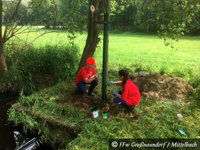 Nach einer Stärkung zu Mittag ging es Tatkräftig weiter. 2 Wasserentnahmestellen mussten noch von Unkraut und Müll befreit werden. Nachdem wir dies auch beendet haben kann nun wieder ohne Problem Wasser zum Löschen entnommen werden.