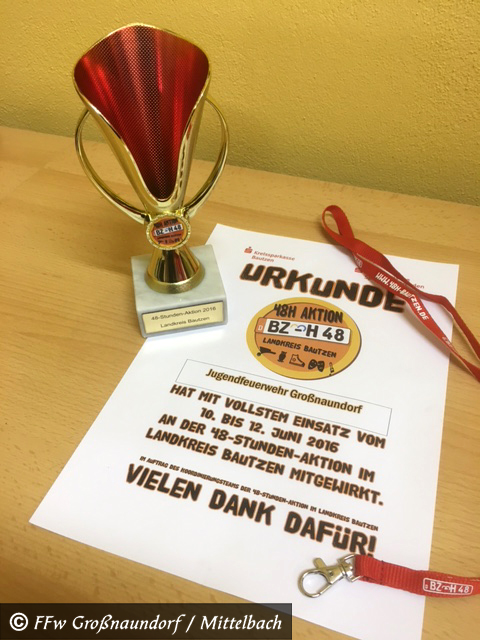 Am Sonnabend den 11. Juni 2016 reinigte die Jugendfeuerwehr im Rahmen der 48h Aktion des Landkreises Bautzen den gesamten Bachlauf des Mittelwassers in unserem Ortsgebiet. Und da kam so einiges zusammen. Angefangen bei Essensresten über Glasscherben bis hin zu Baufolien wurde wirklich alles aufgesammelt.