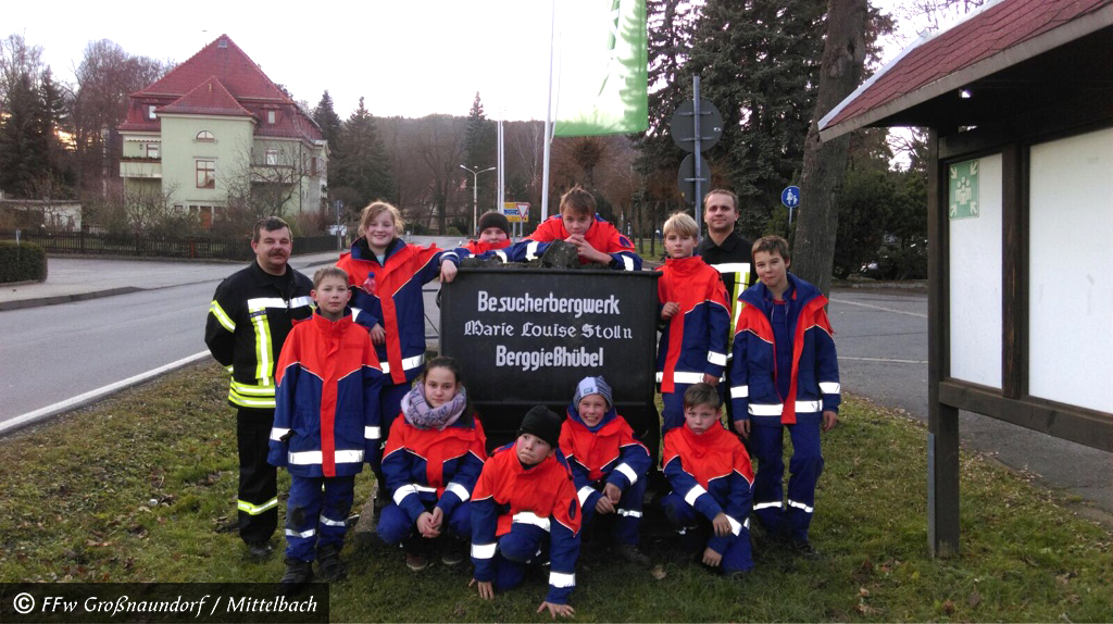 Am Sonnabend den 10.12.2016 führte unsere Jugendfeuerwehr ihre diesjährige Weihnachtsfeier durch. Früh am Morgen ging es mit dem Auto los. Ziel war diesmal der „Marie-Louise Stolln” in Berggießhübel. Ausgestattet mit kompletter Jugendfeuerwehruniform, eigenem Jugendfeuerwehrhelm und Taschenlampen ging es auf in den Stolln. Den Kindern und Betreuern wurde erklärt was in diesem Stolln abgebaut wurde, wie der Stolln zu seinem Namen kam und wie schwierig es damals war überhaupt etwas abzubauen. Ein Merkmal was sich sicherlich jeder merken wird war, dass das „Blaue Wunder” in Dresden zum größten Teil aus diesem Bergwerk stammt. Raus aus dem Bergwerk ging es dann über insgesamt 11 Leitern und Plattformen nach oben. Am Tageslicht angekommen gab es für alle ein gemeinsames Mittagessen. Bei Nudeln und Tee zum Aufwärmen stärkten sich alle erst einmal. Nach dem Essen erkundeten alle zusammen noch die Gerätschaften die in der „Neuzeit” zum Abbauen benutzt wurden.