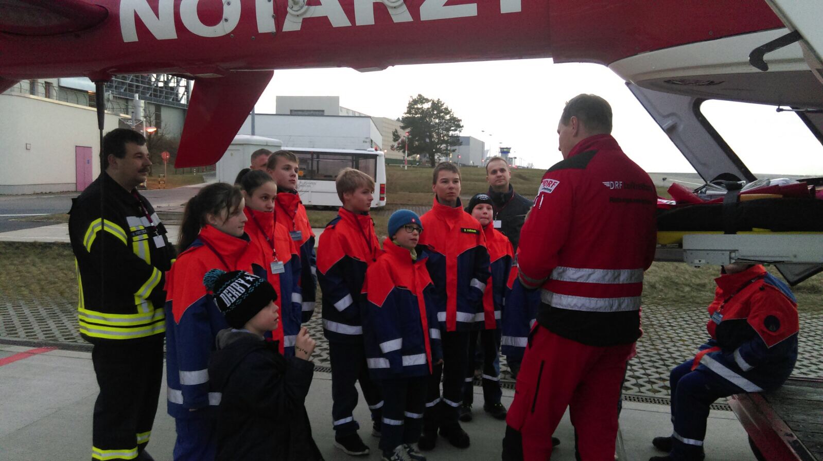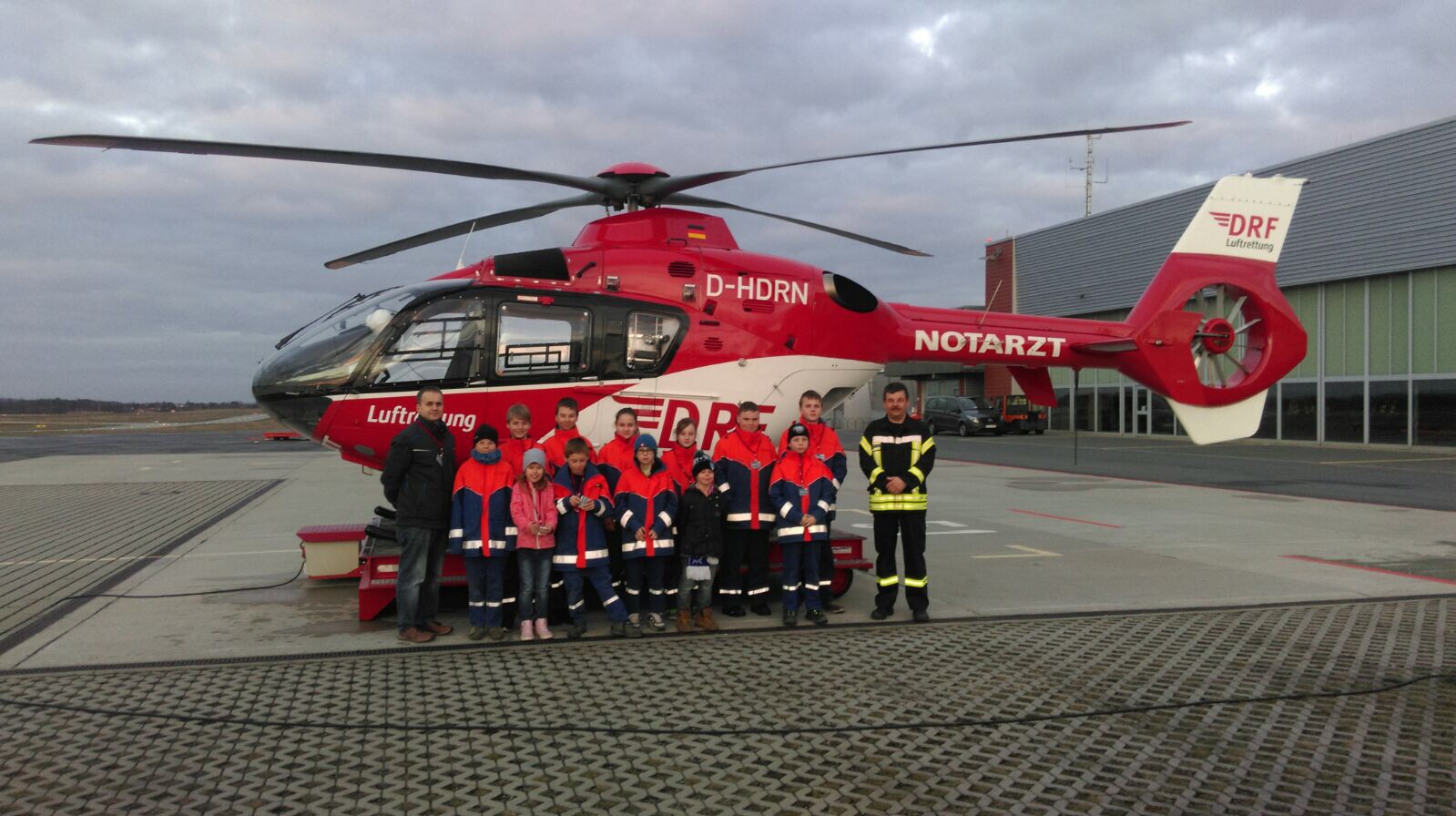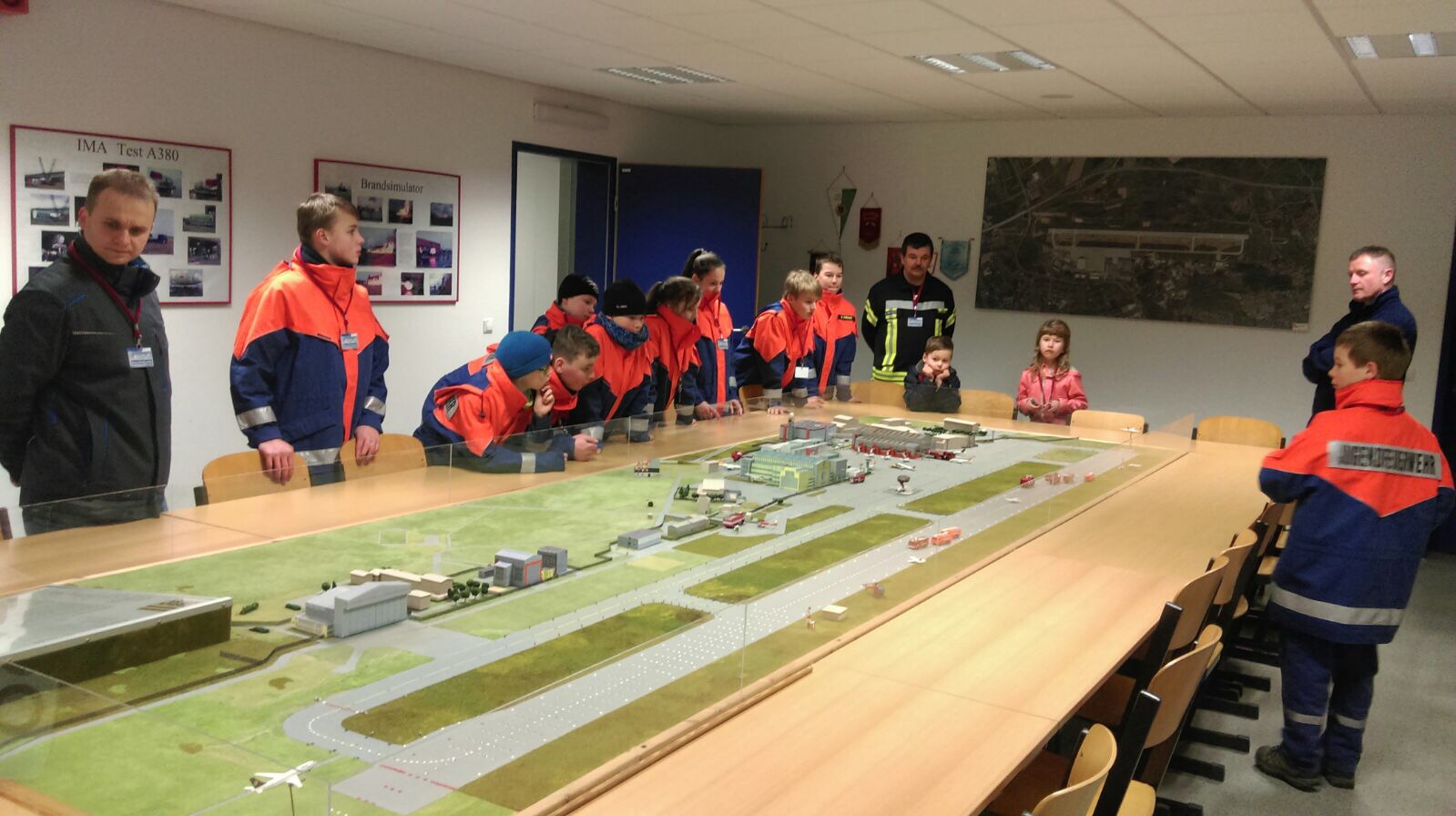 Am Freitag, den 10.03.2017 stand im Jugendfeuerwehrdienstplan nur "Überraschungsausflug". Gemeinsam machte man sich auf den Weg, doch wohin überhaupt? Ziel war an diesem Tag der Flughafen in Dresden. Nach einer gründlichen Personenkontrolle durften wir, unter Aufsicht des Wachabteilungsleiter der Flughafenfeuerwehr, auf das Gelände. Unser erstes Ziel war der Rettungshubschrauber Christoph 38, der am Flughafen stationiert ist. Die Crew, welche sich gerade für den Feierabend bereit machte, nahm sich Zeit und erklärte uns alles rund um den Hubschrauber. Auch die vielen Fragen wurden mit viel Geduld alle beantwortet. Vielen Dank dafür an die Besatzung des Christoph 38. Danach ging es aber noch weiter. Unser nächstes Ziel war die Wache der Flughafenfeuerwehr. An einem Modell des Flughafen wurde zunächst erst einmal das gesamte Gelände erklärt und gezeigt, wo sich was am Flughafen befindet. Danach ging es in die Fahrzeughalle. Dort wurden uns die Fahrzeuge erklärt und wir konnten hautnah einen Alarm für den Rettungswagen, das Behindertenfahrzeug und das TLF miterleben. Zum Abschluss wurde der Panther aus der Fahrzeughalle gefahren und zeigte sein Können in der Wasserabgabe. Danach ging es wieder nach Hause.