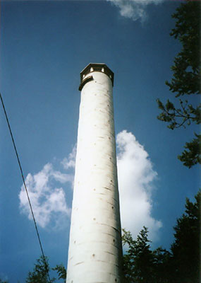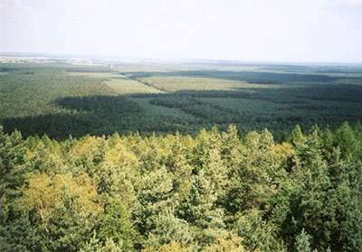 Mit dem Revierförster, Herrn Synatzschke, hatten wir die Besichtigung des Feuerwachturms vereinbart. Genau 112 Stufen führen hinauf zum ca. 25 Meter hohen Feuerwachturm. In kleinen Gruppen konnten die Jugendlichen einen Blick über die weite Waldlandschaft genießen. Ein Angestellter des Forstamtes beantwortete bereitwillig all unsere Fragen und vermittelte uns einen Eindruck über seine Arbeit. So konnte er uns genau Auskunft geben, wann und wo welche Brände gesichtet wurden oder wie man den Ort eines Feuers überhaupt bestimmen kann. Trotz der schönen Aussicht waren doch wohl alle froh wieder zurück am Boden zu sein, denn viel Platz hat man in der engen Kanzel nicht. Außerdem wird es im Sommer auch ganz schön heiß auf dem Turm.
