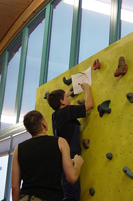Am Sonnabend, den 27. November 2004 besuchten wir die Kletterhalle in Großröhrsdorf. Wir konnten zwei Stunden lang alle Kletterwände ausprobieren. Das ging ganz schön auf die Finger. Auch unsere drei Betreuer kletterten die Wände hoch. Kurz vor Schluss machten wir noch einen kleinen Wettbewerb. Dann waren die zwei Stunden bereits zu Ende und wir mussten gehen, doch davor machten wir noch ein Gruppenfoto. Es hat uns allen sehr gut gefallen.
