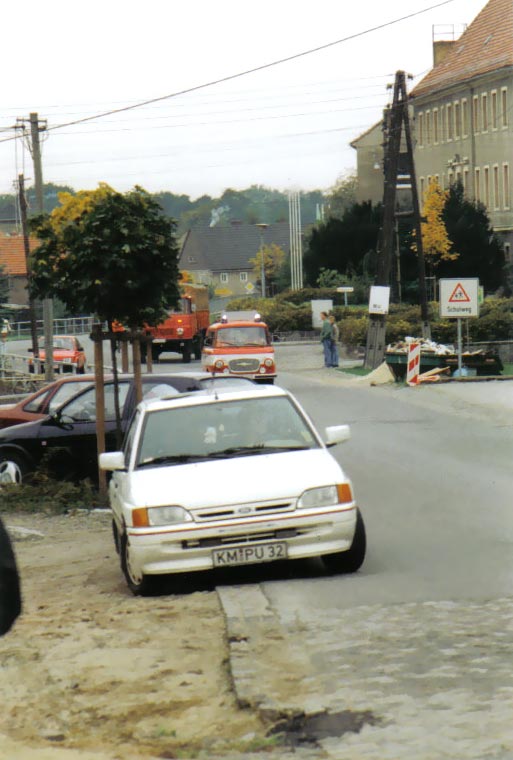 Am Samstag, dem 30. Juni 2001 starteten wir früh morgens um 9.00 Uhr am Gerätehaus in Großnaundorf. Das Wetter bereitete uns zum Glück mal wieder keine Probleme - Sonnenschein und blauer Himmel. Diesmal stand allerdings kein Fahrzeug für uns bereit, was uns zu unserem Ziel bringen sollte - statt dessen war pure Muskelkraft gefragt, denn die ca. 10 km lange Strecke sollten sich die Jugendlichen diesmal auf dem Fahrrad schaffen.